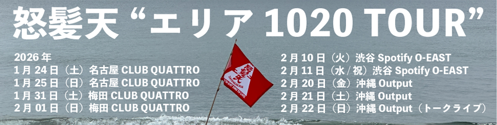<増子 出演情報> 2026年1月8日(木)荻窪 TOP BEAT CLUB にて開催される『TAKA-SHIN-NO-BAR (たかしん no ばぁー) #7』 〜新春初笑い!今年も(は)良い年 2026!〜 へ、増子がゲスト出演! 2025.12.04 UP デジタルシングル『オトナノススメ〜還暦上等!〜』 2025年12月10日(水)リリース決定! メンバー全員が26年〜27年にかけて還暦を迎えるにあたり「オトナノススメ〜還暦上等!〜」として新録! 主要配信サイト一覧はこちら ![]() 怒髪天「オトナノススメ」が日本マクドナルドの「ダブルチーズバーガー」CMソングに大決定!! 12月9日から放映される日本マクドナルドのTVCM「青春を取り戻すバーガー」篇に『オトナノススメ』が起用されます!後日、メイキングムービーの公開などもありますのでお楽しみに! ★日本マクドナルドTVCM「青春を取り戻すバーガー」篇 2025.12.01 UP <増子 出演情報> 10年に1度!丙午の1966年生まれ、総勢30名ものミュージシャンたちが繰り広げる想像の斜め上ゆくエンターテインメントショー! ROOTS66 -NEW BEGINNING 60- supported by tabiwa 2026年3月20日(金/祝)東京ガーデンシアター 2026年3月22日(日)大阪城ホール 今回も増子直純、出演させていただきます。詳しくはオフィシャルサイトをチェック! 2025.11.29 UP エリア1020 TOUR 1月31日(土)梅田CLUB QUATTRO "五十乃実〜収穫〜" 2月1日(日)梅田CLUB QUATTRO "ファイナルシリーズ 大阪編" 2月10日(火)渋谷Spotify O-EAST "五十乃実〜収穫〜" 上記3公演、客席レイアウト変更に伴い、指定席追加販売決定! 2025.11.27 UP MEDIA →<TV>を更新。 2025.11.24 UP 還暦上等!生涯現役スタミナ街道 一部公演詳細発表! ファンクラブ先行受付スタート! Just a sixty "爆発だ!ズーミーマン" 4/23(木)東京 キネマ倶楽部(増子 誕生日公演) 湯ナイテッド・アワーヅ 2026 "還暦一番風呂、お先で〜す" 5/16(土)石川県・粟津演舞場 5/17(日)石川県・粟津演舞場 還暦RIOT "MORE FUTURE TOUR" 5/27(水)下北沢 SHELTER 6/6(土)和歌山CLUB GATE 6/7(日)大阪・堺fandango 6/14(日)松本ALECX 6/25(木)姫路Beta 6/27(土)小倉FUSE 6/28(日)熊本 NAVARO 6/30(火)四日市 CLUB CHAOS 7/11(土)金沢 vanvan V4 7/12(日)岐阜 ants 7/18(土)盛岡 the five morioka 7/20(月/祝)郡山 HIP SHOT JAPAN 8/1(土)岡山 ペパーランド 8/2(日)岡山 ペパーランド 2025.10.29 UP MEDIA →<RADIO>を更新。 2025.10.26 UP エリア1020 TOUR、10/29公演から販売を開始する新しいTシャツをアップ!さらに定番商品として、アクリルキーホルダー2種を新発売! 2025.10.25 UP MEDIA →<WEB>を更新。 |